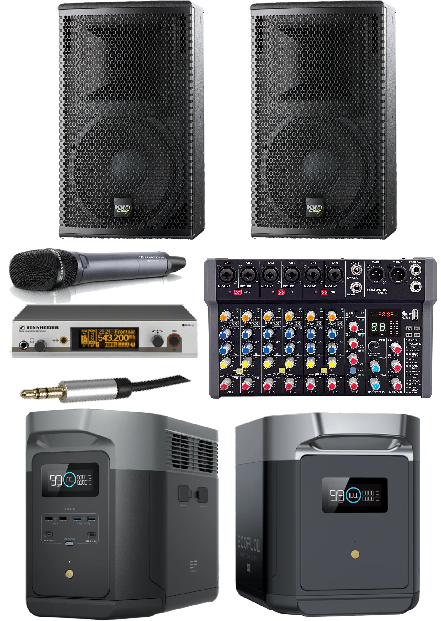 There have been several situations where we’ve needed to place speakers on small vehicles where a traditional petrol or diesel generator would cause too many fumes or noise where they are used in close proximity to people or animals. Our ecoflow battery inverters and additional battery banks provide hours of use.