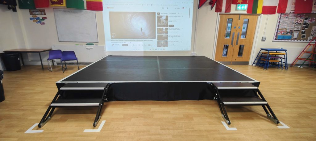 Small Stages to hire in Harlow & Hertfordshire with examples of sizes and configurations for bands, presentation speakers and events.